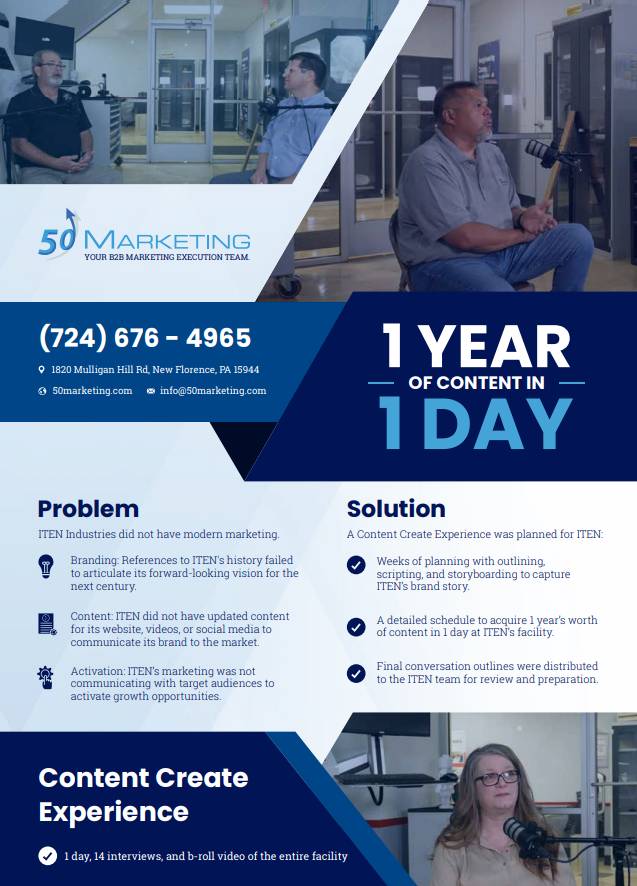 50 Marketing’s Content Creation Experience gives you the authentic, brand-building content you need to show who you are, what you do, and why it matters—across every platform.